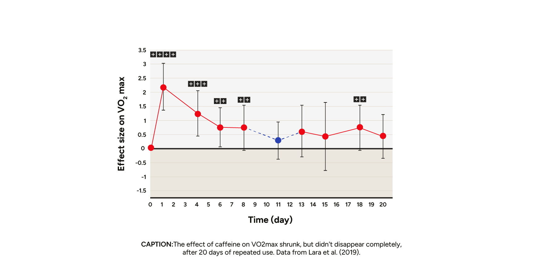 Figure 3: Ergogenic effect of caffeine can shrink (but not disappear) over time