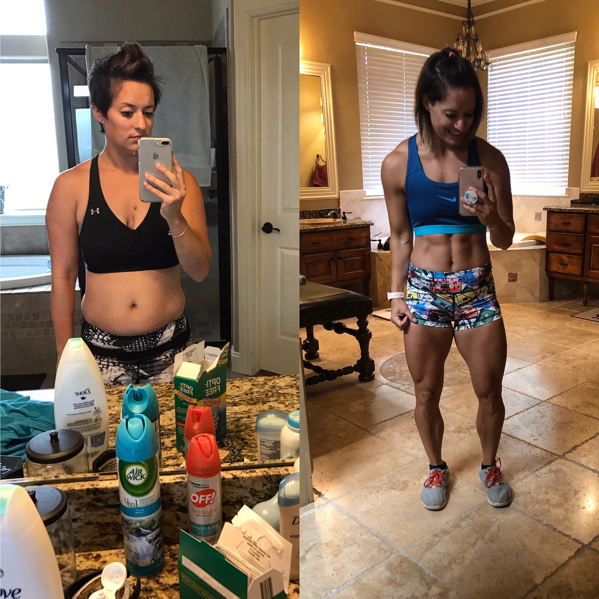 My training has also changed from predominantly CrossFit to strength training with the occasional short metcon as cardio-only to say I’ve had results with RP regardless my training preference. With this I’ve learned to not obsess about the scale. While it was a great measure during my initial weight loss, as composition changes happened the scale didn’t show changes I was looking to see. I use pictures to measure changes now, or strength gains in the gym which is (for me) more fun! Below is my picture comparing even similar weights. Between a move, vacation, an extra trip, and unpacking –my nutrition wasn’t my best, but mostly to nail in the point that consistency over perfection has helped me maintain my results.