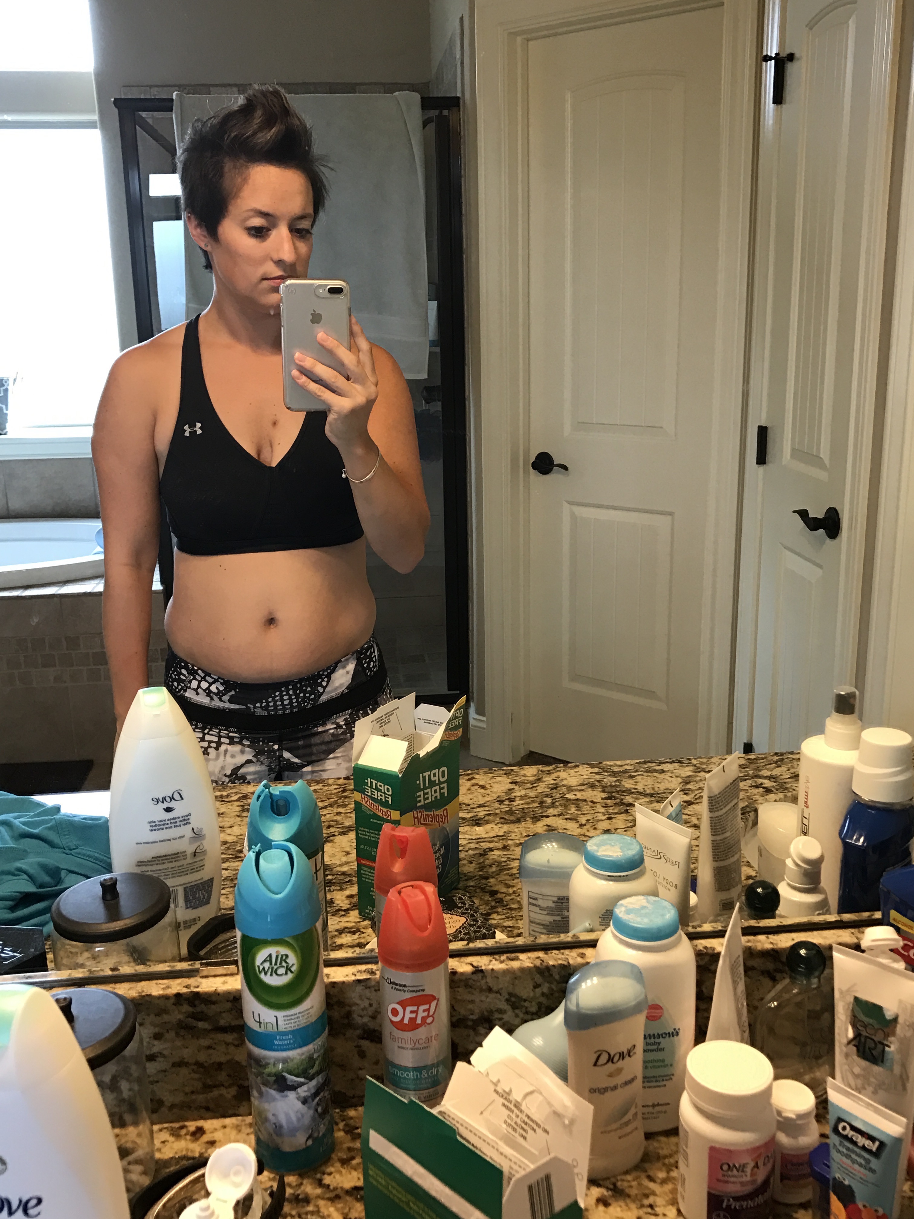 I didn’t make any changes before my brothers wedding, outside of trying Beach Body which didn’t last past 2 workouts. My journey at that point started mostly in the recognition that I wanted to make a change. 2 months later however, I joined College Station CrossFit. They had child care and I was ready to do workouts closer to what I had enjoyed before kids. The first month I had no physical changes or even scale changes, which would seem discouraging. It was slightly, but what I had noticed was more energy throughout the day with my kids, I was sleeping better, and the exercise was a great “emotional reset”/giving me more patience throughout the day. Eventually, I saw some changes on the scale which motivated me to try and count calories. At first I used My Fitness Pal. I lost more weight and I was happy with my initial results.