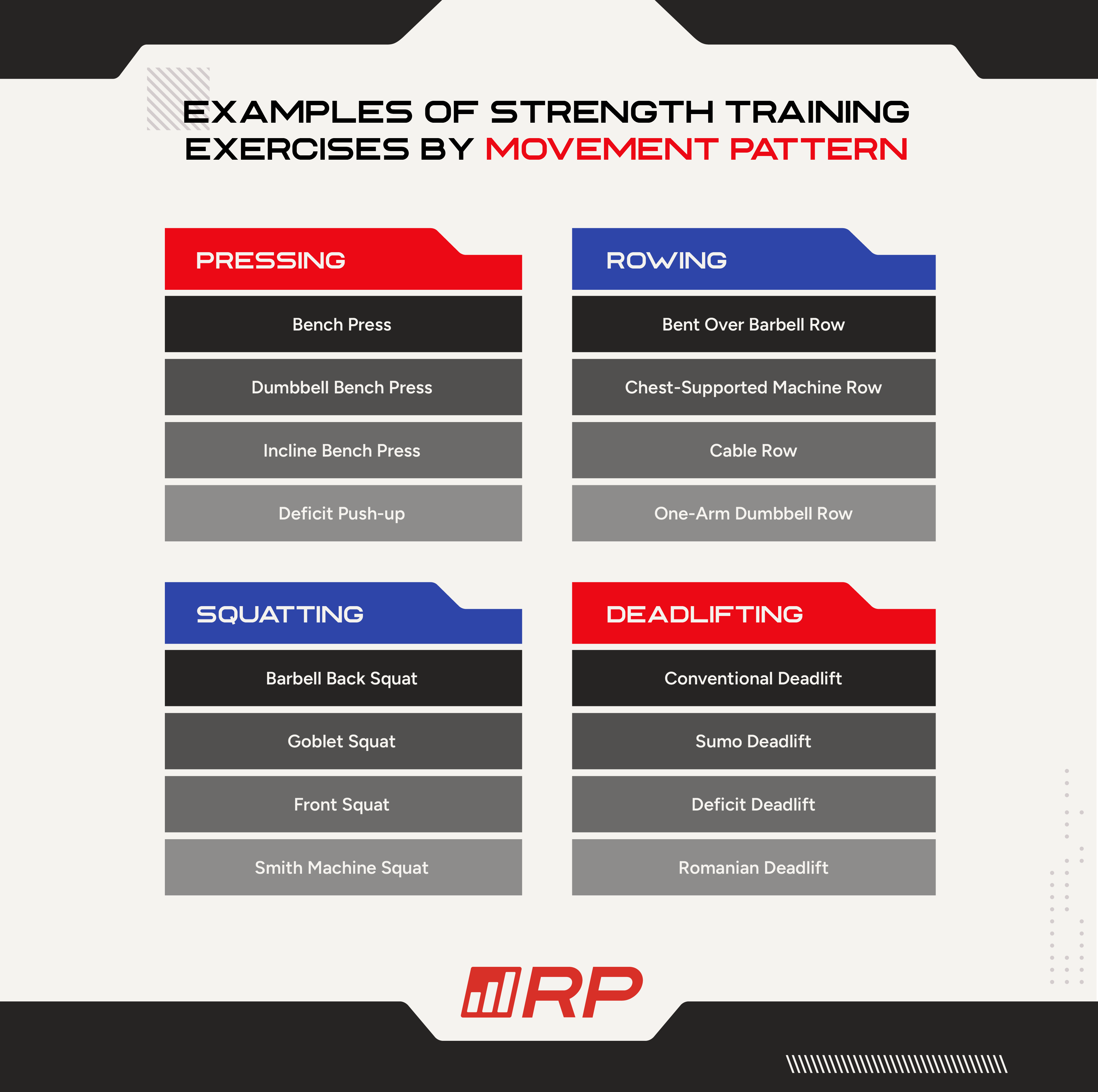 Deadlifts hit both, but most other exercises only target one or the other. That’s why I like to pair two exercises in a training cycle to fully train both functions.