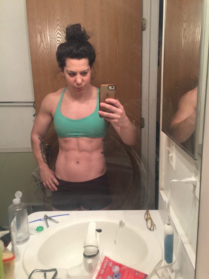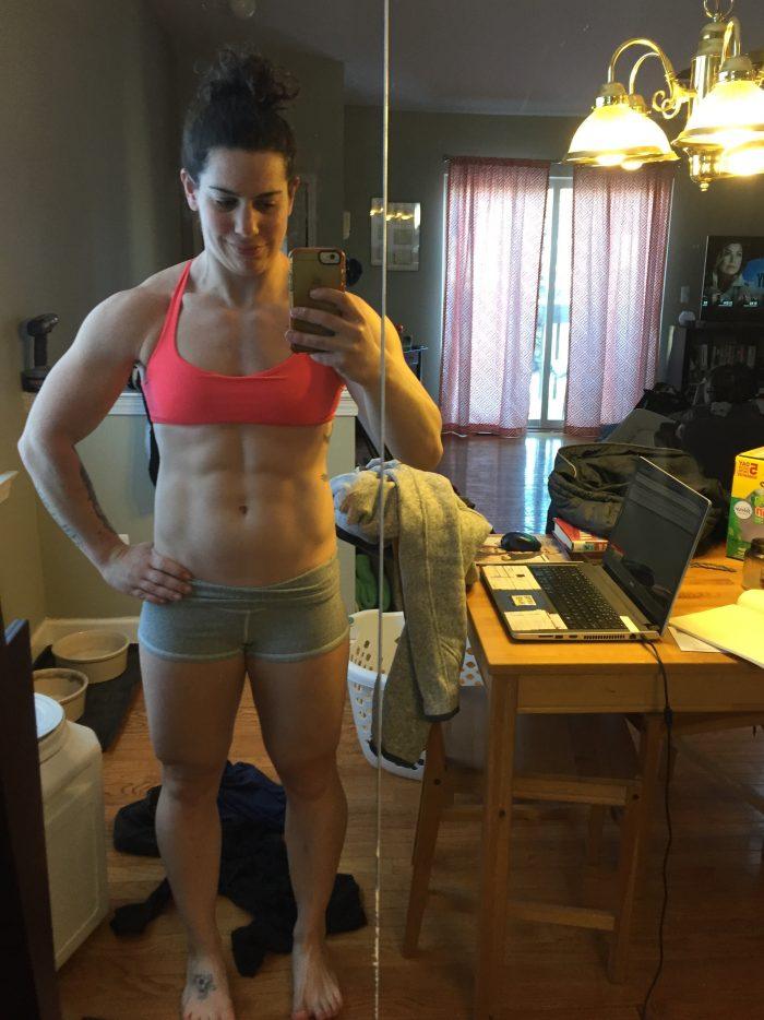 It’s a whole different ball game as a woman. Getting bigger is not something society encourages for us- “small, lean, toned” are words that are constantly being tossed around women’s heads. Even as an athlete who embraces my muscles and body, and what it allows me to do, it was harder than I thought it would be to see the scale go up (even though that was my goal and I was working very hard to do it). It was harder than I thought it would be to see my abs start to disappear. Every time I had to wrestle in and out of shirts that no longer fit, I felt upset and wondered if I was making the right choice. To be completely honest, this was around the time I wanted to quit- I was probably 6 weeks in. When things get hard on the way to long-term goals, because they always do, there’s really only two options- to put your head down and push through or to quit. And often, quitting is far far easier. I had to keep bringing myself back to my “why” and my long-term goals. I had a constant internal conversation- “Right now I feel big, right now it’s hard, but I want to get stronger, I want to perform well at Nationals, I want to clean and jerk 100 KG” (my lifetime best had been 97 that I had hit a year previously, and not again since). So every time I stepped on the scale to email my coach and cringed that it had gone up, I visualized myself on a Nationals platform, hitting that lift, and how worth it that it would be.